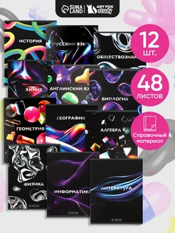 Предметные тетради 48 листов в клетку и линейку, 12 шт