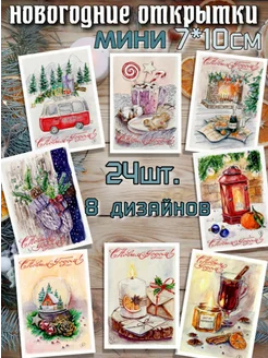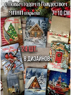 Открытки с Новым годом и Рождеством мини 7х10, 24 шт