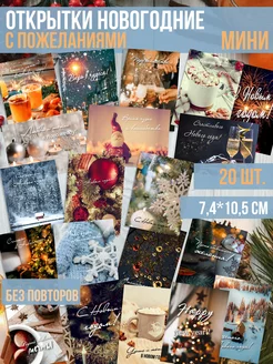 Новогодние открытки мини 7х10, набор 24 штуки, бирки
