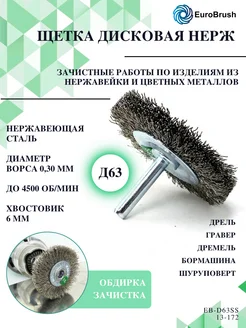 Щетка крацовка по нержавейке Д63х8 ворс 0,3 для дрели