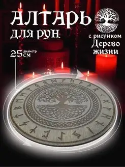 Алтарь для ритуалов, рунический круг с деревом жизни серый