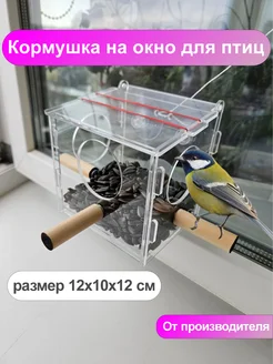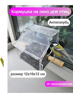 Кормушка на окно для птиц прозрачная на присосках антиголубь