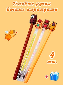 Ручки гелевые и вечные карандаши Капибара 4 штуки