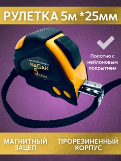 Рулетка строительная 5 м х 25 мм, автостоп магнит