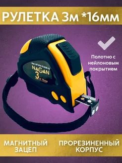 Рулетка строительная 3 м х 16 мм, автостоп магнит
