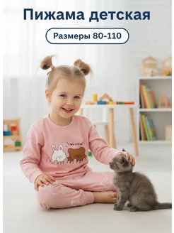 Пижама детская хлопковая с штанами для сна, дома и сада