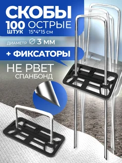 Заостренные скобы садовые (100шт.) с фиксаторами (100 шт.)