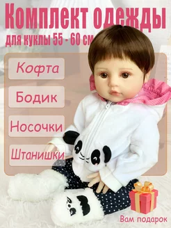 Одежда для куклы реборн "Панда" 55 - 60 см набор 4 предмета