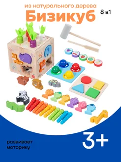 Сортер 8 в 1 деревянный развивающий, игрушка Монтессори