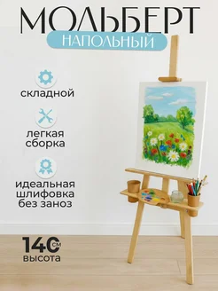 Мольберт с полкой для рисования деревянный напольный 140 см
