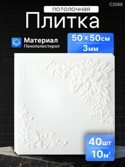 Плитка потолочная пенопластовая белая 40 штук С2072