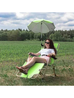 Шезлонг складной с подголовником с зонтом (670х1930мм, зелен