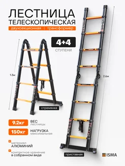 Лестница трансформер, телескопическая, 2-секционная 1,3 м