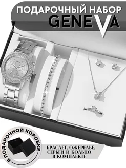 Часы наручные Женева ( набор 5 в 1 ) в подарочной коробке