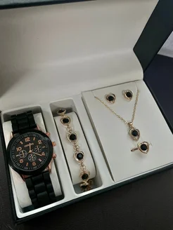 Часы наручные Женева на силиконовом ремешке (набор)