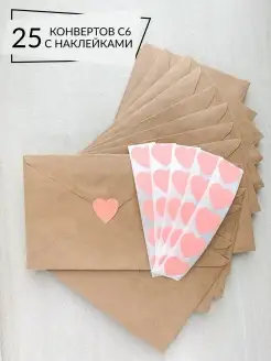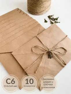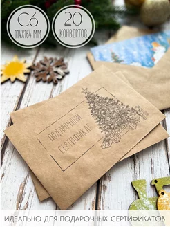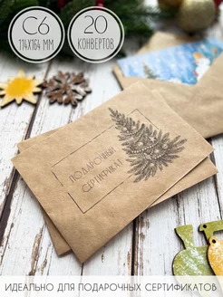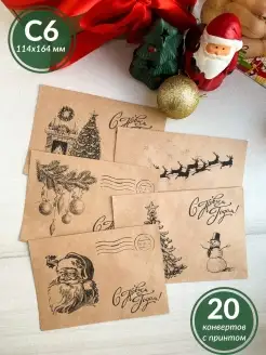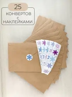 Бумажные крафтовые конверты с новогодними наклейками С6