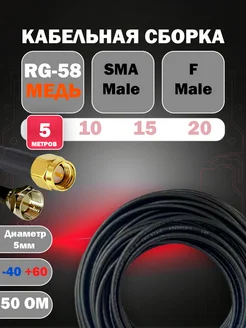 Кабельная сборка SMA-Male – F-male RG-58, 5 метров, Cu