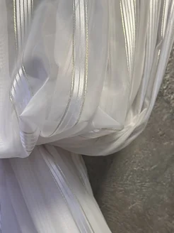 Тюль-вуаль с золотистыми полосками для высоких потолков