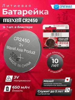CR2450 батарейка 3V, литиевая дисковая - 1 шт