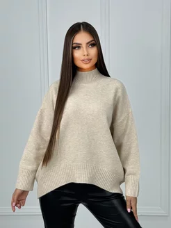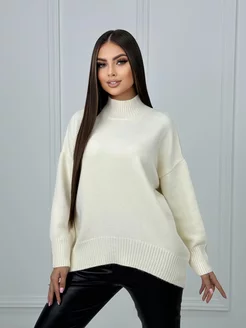 Свитер теплый вязаный с горлом оверсайз, кофта