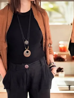 Кулон на длинном шнурке лист