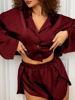 Пижама с шортами и рубашкой с длинным рукавом леопардовая