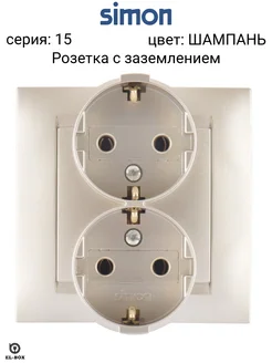 Розетка двойная с заземлением шампань 16А серия 15
