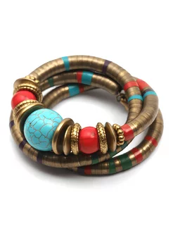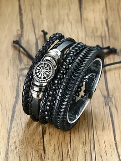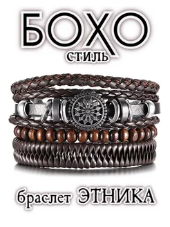 Браслет на руку широкий кожаный многослойный Бохо набор