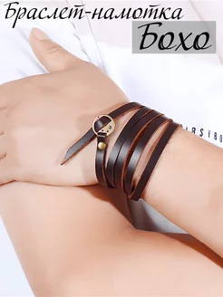 Браслет на руку кожаный тонкий бохо фенечка длинный
