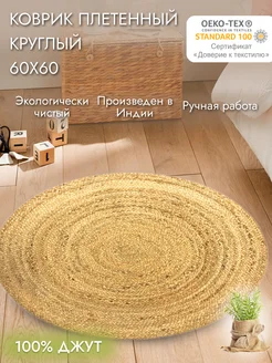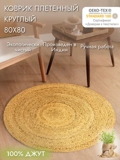 Джутовый ковер круглый 80х80 натуральный плетёный