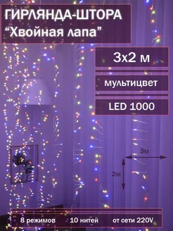 Медная Гирлянда штора хвойная лапа 3х2 уличная Цветная