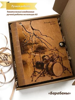 Деревянный блокнот-ежедневник А5 на кольцах с барабанами