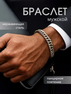 Браслет цепь мужской на руку широкий металлический