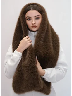 Шарф зимний меховой с прорезью из экомеха снуд теплый