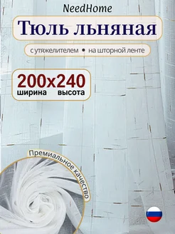 Тюль белый льняной 200х240 для гостиной и кухни