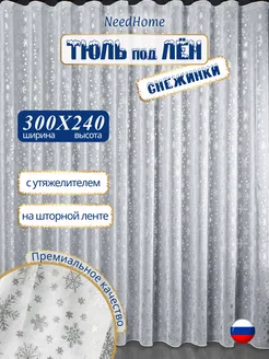 Тюль под лён "Снежинки" 300х240 для гостиной