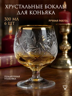 Бокалы для коньяка с позолотой Мельница 300 мл 6 шт