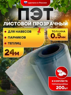 ПЭТ-лист прозрачный монолитный в рулоне 0.5 мм - 24 метров