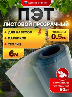 ПЭТ-лист прозрачный монолитный в рулоне 0.5 мм - 6 м