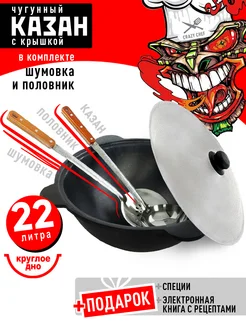 Узбекский казан чугунный с крышкой 22 л для костра и мангала