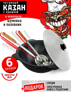 Узбекский казан чугунный с крышкой 6 л для костра и мангала