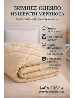 Одеяло Зимнее Шерсть Мериноса 140х205 чехол Хлопок