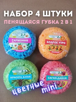 Набор 4шт мини мочалка губка с мылом пенящаяся 2 в 1
