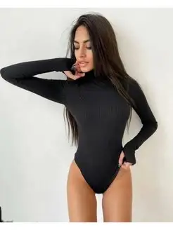 Боди водолазка с длинным рукавом и вырезом на пальце