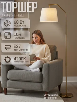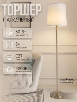 Торшер напольный с абажуром светильник 5833LF 1L AB+WT