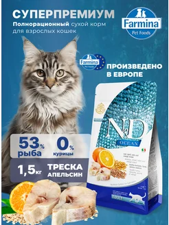 1.5кгДля взрослых кошек C рыбой Треска Холистик