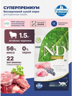 ND Prime 1,5кг беззерновой сухой Для взрослых кошек