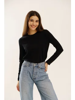 Лонгслив оверсайз чёрный базовый с длинным рукавом
