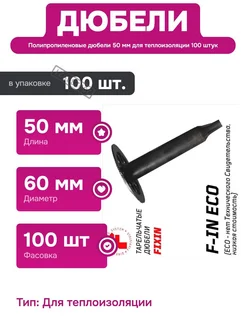 Тарельчатый дюбель F-IN ECO 100 60 гриб под пистолет 100шт