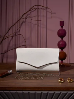 Клатч вечерний белый с цепочкой на плечо свадебный